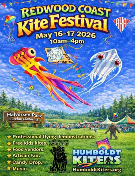 Free waterfront festival with professional kite demos, giant inflatable kites, an artisan fair, live music, and free kites for kids along Humboldt Bay. Frequency: Annually